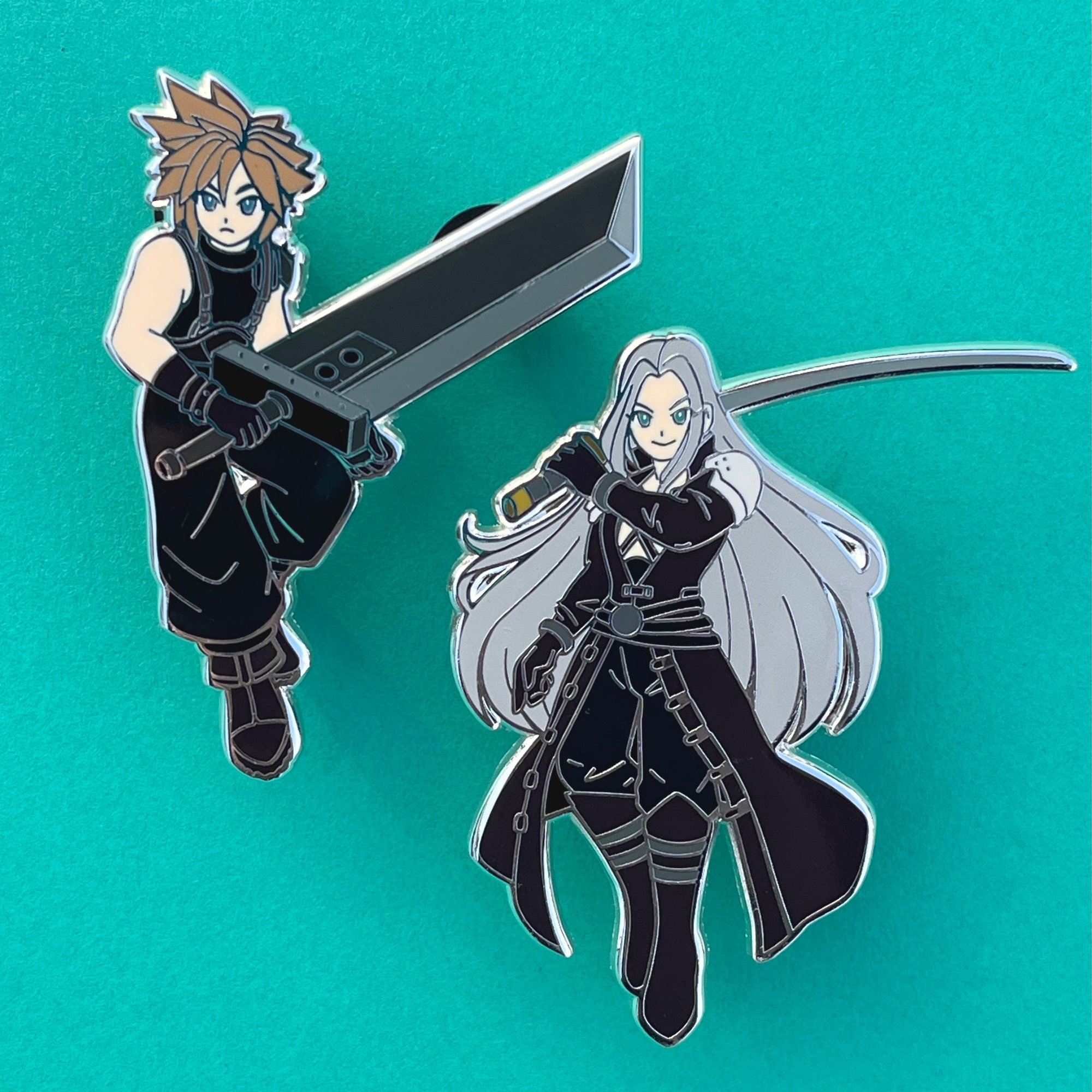 This listing is for the Soldier and One Winged Angel (but not on this pin lol) hard enamel pins.